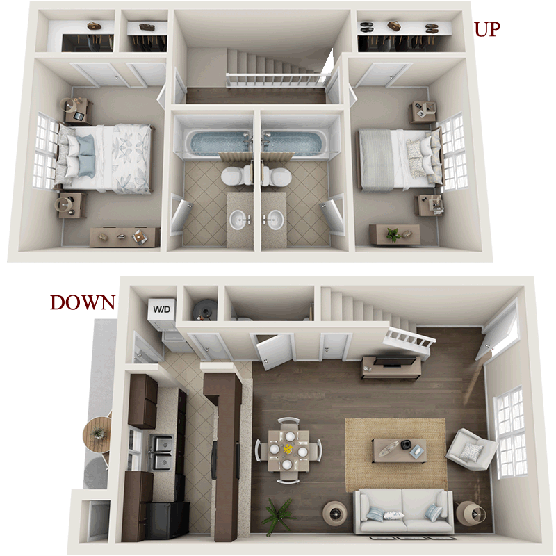 Two Bedroom / Two and 1/2 Bath Townhome - 1,100 Sq. Ft.*